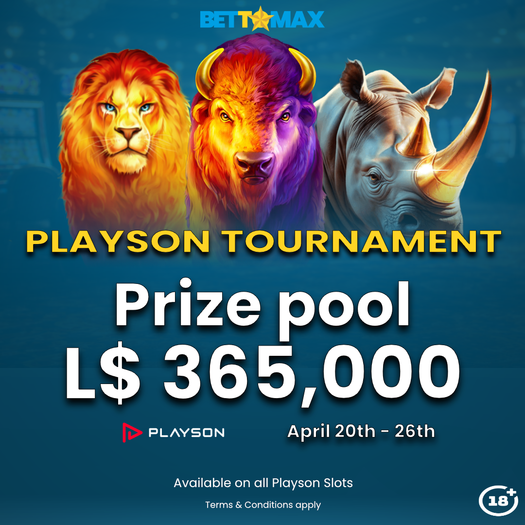 Bettomax is organizing a Playson Slots Tournament! Participate for a chance to win a share of the 365,000 LRD prize pool!